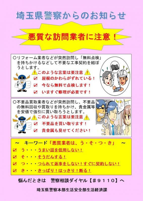 悪質な訪問業者に注意(PDF:249KB)(別ウィンドウで開きます)