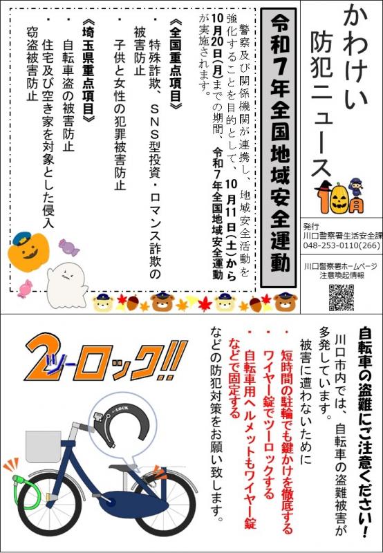 ホーム > 埼玉県警について > 各警察署の連絡先 > 川口警察署 > 注意喚起情報等 > かわけい防犯ニュース(10月号)