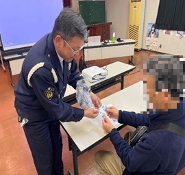 講習会では、自転車の乗り方及び本年4月から導入される自転車の青切符対象違反の説明、さらに歩行時の事故防止や反射材の着用について講話を行いました。